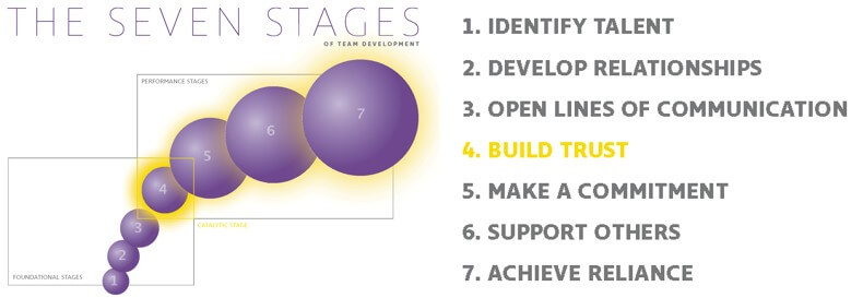 At this highest stage, team members rely on one another—even though reliance requires vulnerability—to achieve true team results. Reliance recognizes that no one maximizes his or her talents in isolation.
